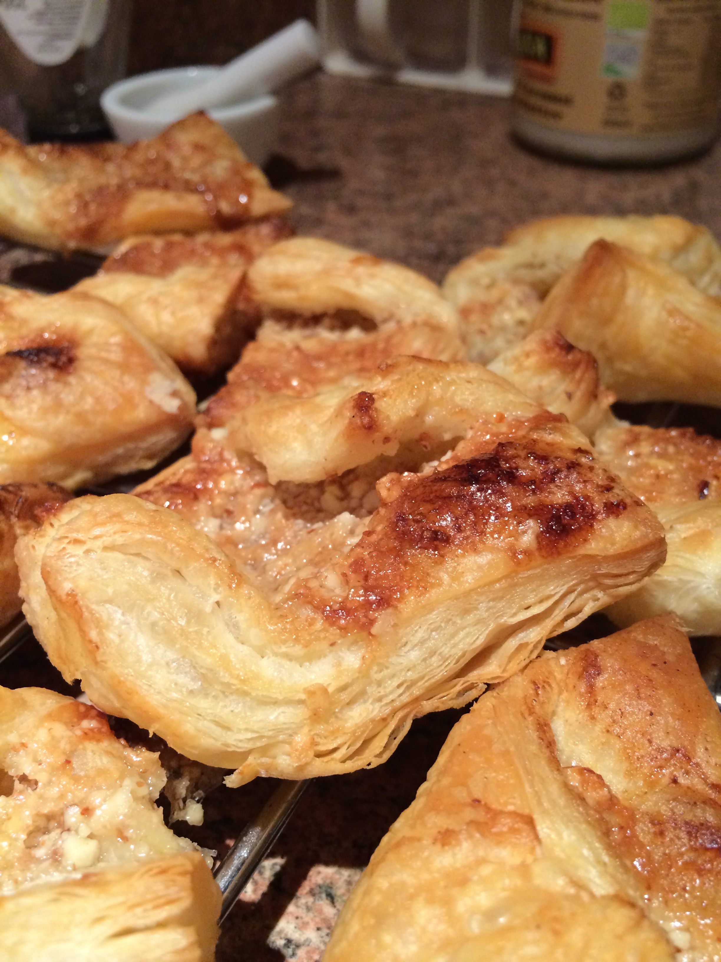 - Fill pastry with filling and close it. It doesn’t matter exactly how you close it, as it looks nicer when it opens up a bit in the oven anyways!