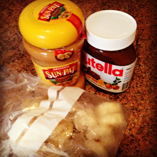 The title gives away the whole post 😉  I’ve made Frozen Banana Ice-cream before (just blend the frozen banana – I’ve blogged about it here).  It’s a simple vegetarian ice-cream with added flavours.  Delectable. Today I wanted a tiny bit of Nutella and Peanut Butter in it… I got started on whipping this up! 😉